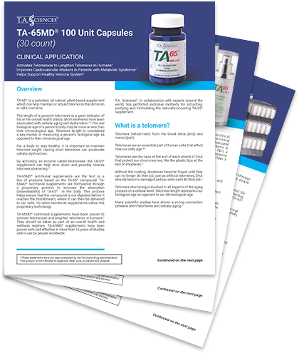 The TA-65® physician’s brochure reviews telomere biology and the research behind the TA-65® patented compound.